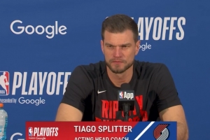 24直播网4月22日讯 西部首轮系列赛G2,开拓者106-103力克马刺大比分1-1平。赛后斯普利特接受了采访,以下为采访全文。